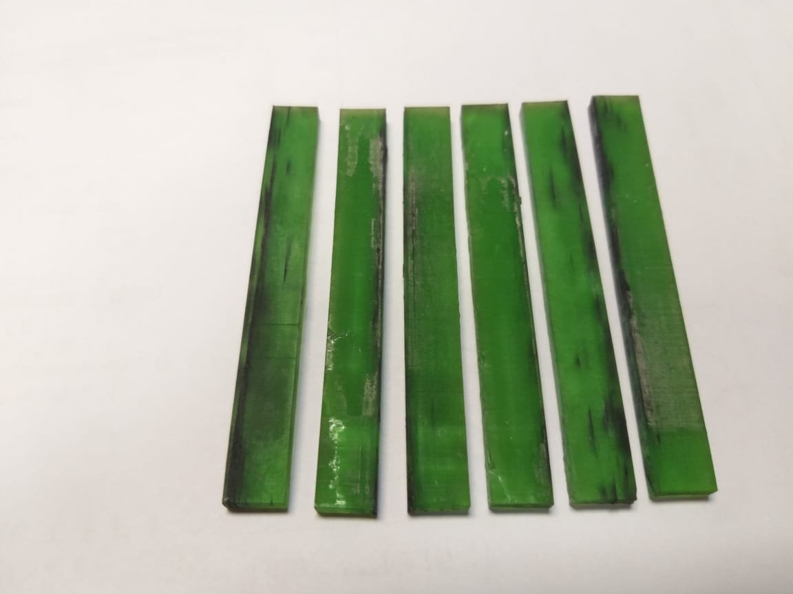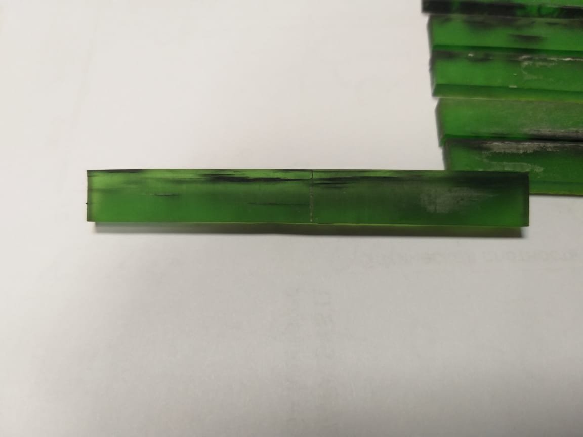 Кое что из волокна в массу полимера вошло... Как дефект печати ))). В виде полосок (см. фото). Вероятно с нарушением целостности и сплошности материала отвержденного композита.