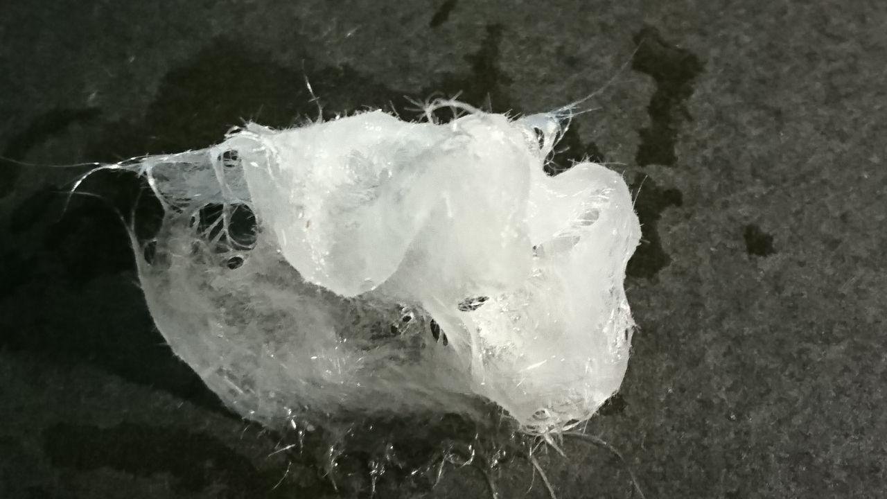 При механическом перемешивании волокно комковалось, сбиваясь в клубки.