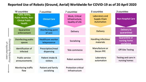 Нашлась работа и для колесных наземных роботов – дистанционно управляемые аппараты датской компании UVD Robots с февраля использовались в КНР для стерилизации помещений, в которых ранее находились больные COVID-19. Для этого устройства оснащались мощными источниками ультрафиолетового излучения, уничтожающего бактерии и вирусы.
