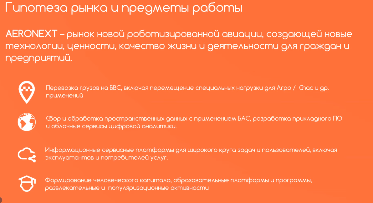 1. Масштабное развитие рынка. Создание условий для безопасного повсеместного применения БАС в качестве предмета авиационной деятельности. Поддержка экспорта и защита национального рынка.